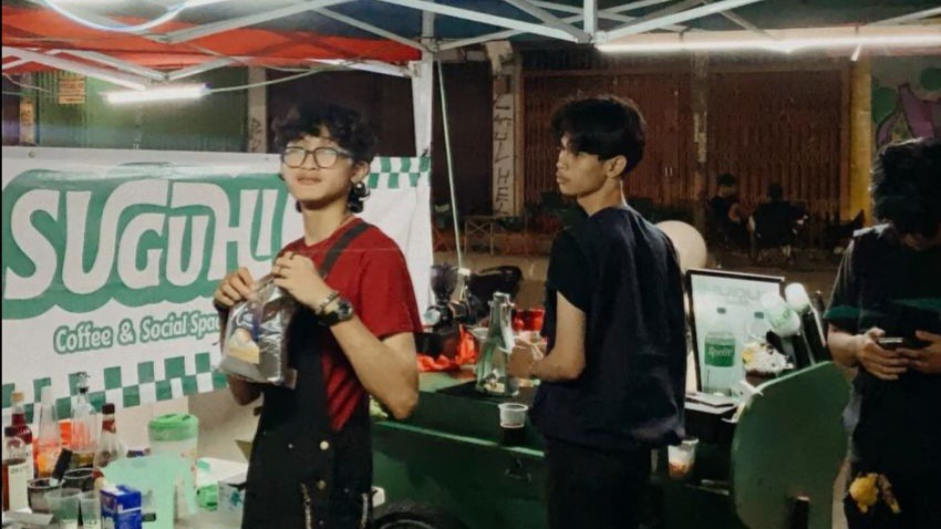 Potret mahasiswa yang sedang kerja part-time di street coffee, Rabu (1/4/2026).